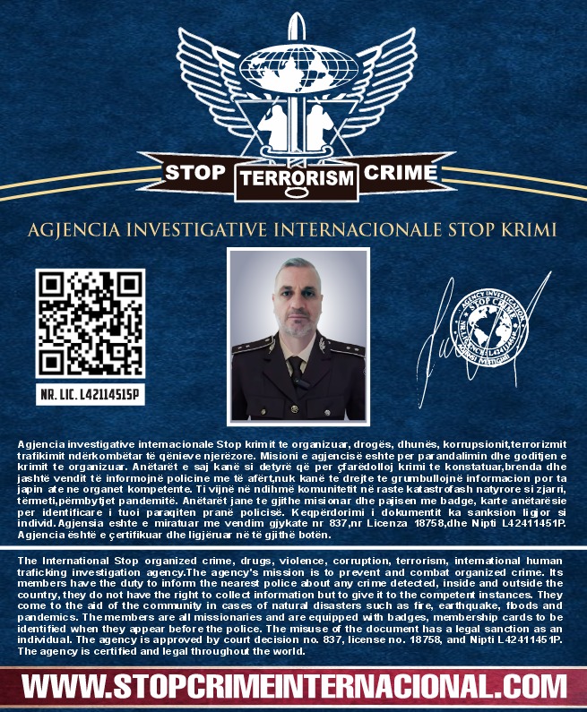 The Investigative Agency for Crime Prevention is a community-based and voluntary initiative established to contribute to the prevention of crime and the strengthening of public safety, in accordance with the laws of the country where it operates.